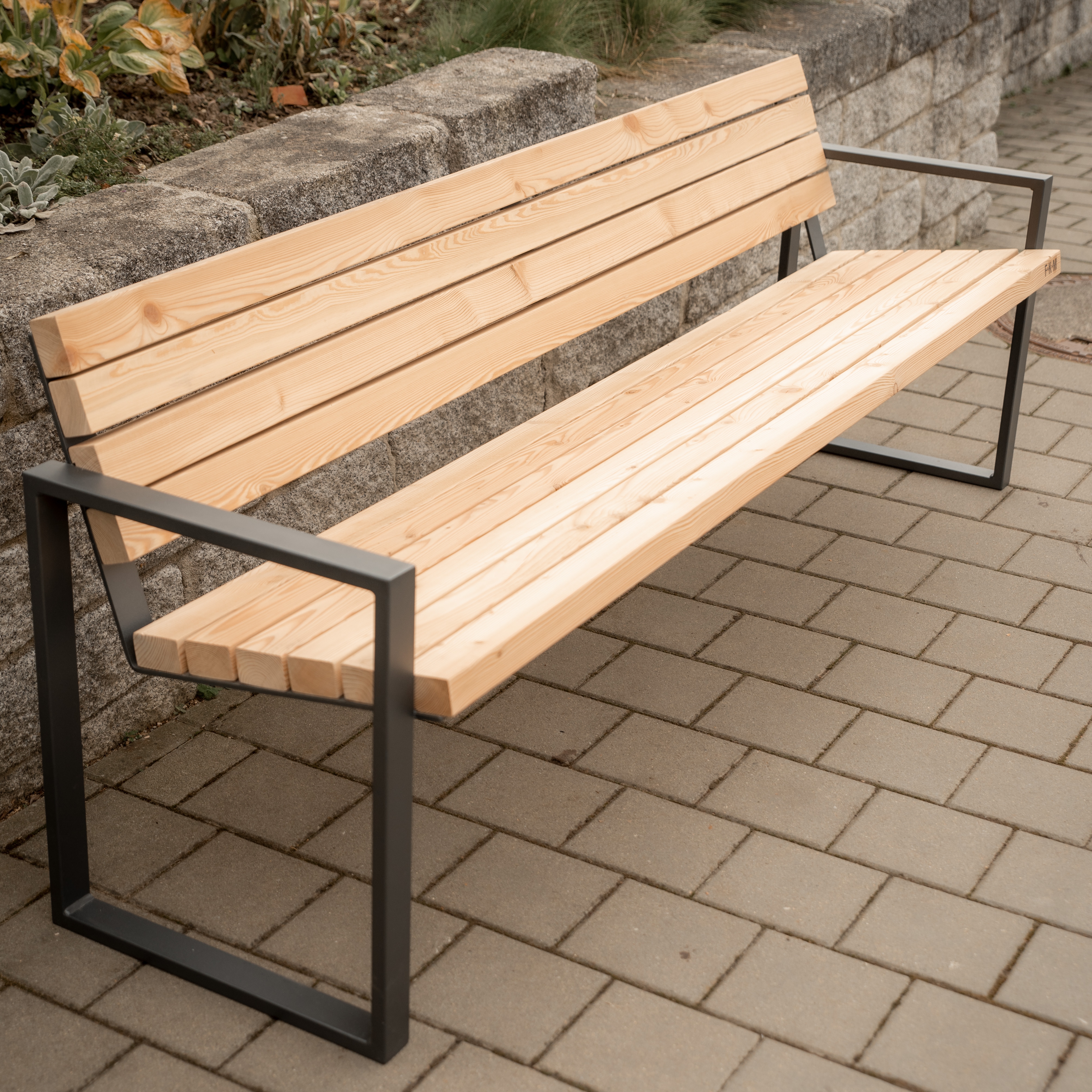 Die viereckigen Seitenteile der Bank wurden feuerverzinkt und pulverbeschichtet, was die Bank daher wetterbeständig macht.